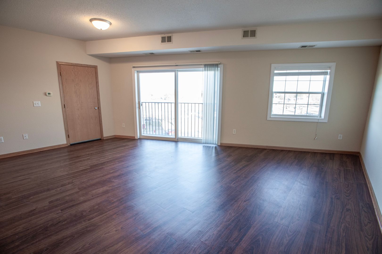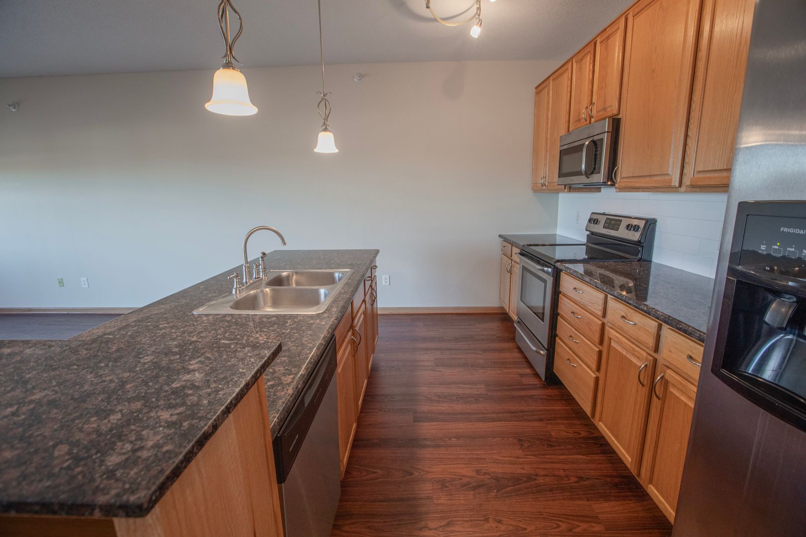 This Juniper style apartment home is located on the east end of the building. Enjoy the benefits of open concept living with partial river and Main Street views. The 1 bedroom/1 bathroom, 804 square foot unit features a galley style kitchen with an abundance of cabinet space and an over-sized island breakfast bar. This also features an in-unit washer and dryer tucked away in the bedroom.