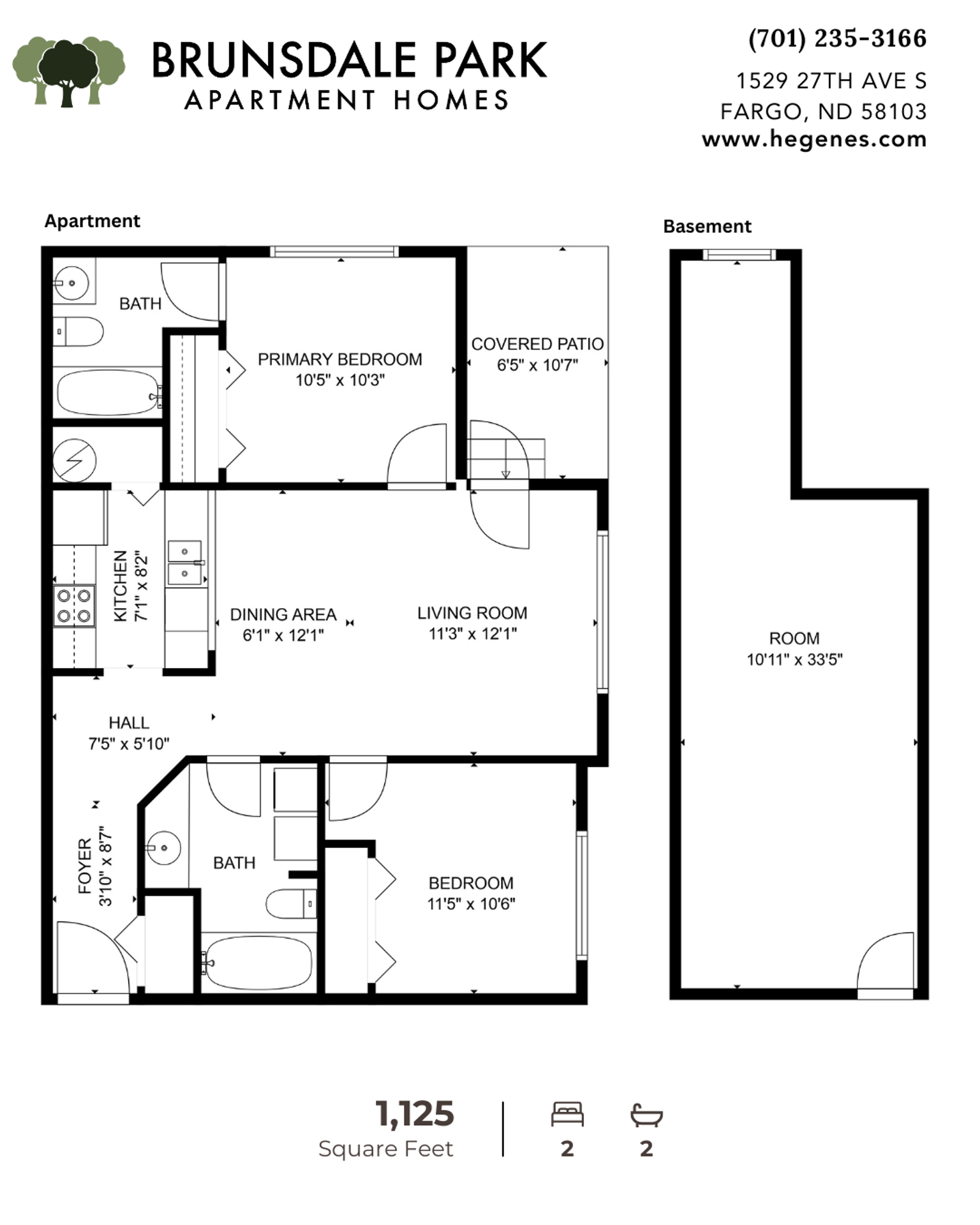 Come tour this beautiful 2 bedroom 2 bathroom apartment! The bedrooms are separated by a living room, making this the ideal floor plan for privacy among roommates. Just a block away from a playground and running paths, Brunsdale Park has plenty of options for outdoor activities. Each apartment comes with a walkout patio/balcony, in unit washer and dryer, and a double stall garage for parking! Discover an extra delight within each apartment—an additional 300 sq. ft. family room in the basement, perfect for an at home gym, game room, etc. Call our leasing office today to take a tour of your potential new home!