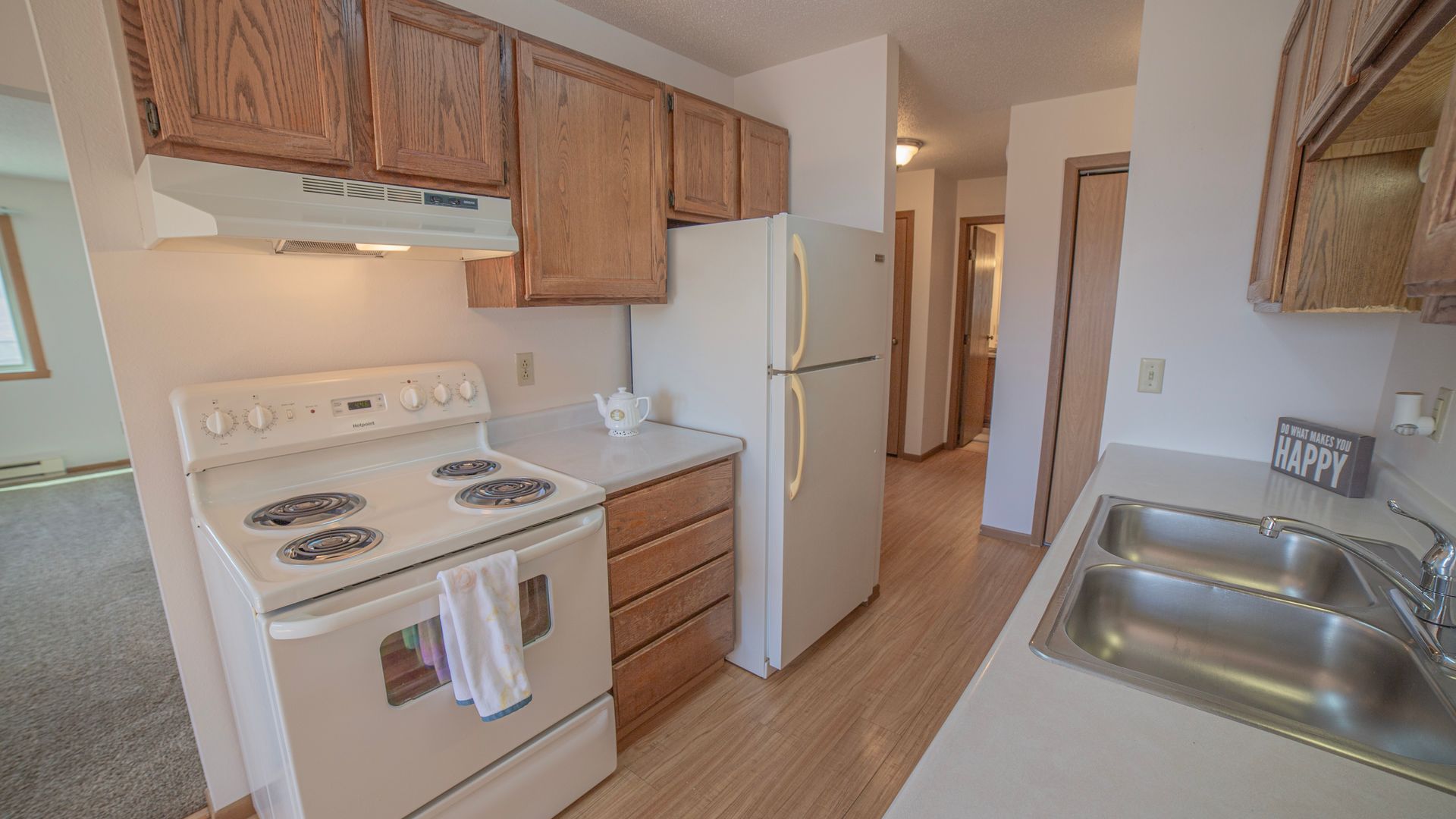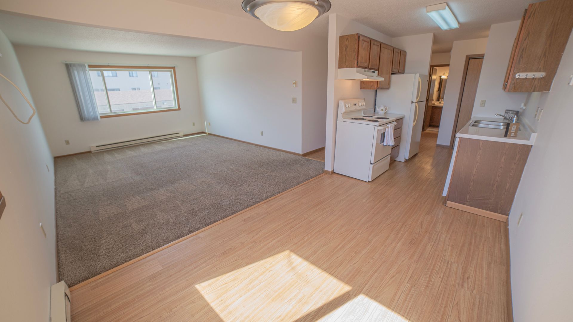 Step into this inviting two-bedroom, one-bathroom apartment waiting for you! We're proud to be a pet-friendly community located right next to a dog park; ask us about our pet deposits! This unit comes with the added convenience of a single stall garage and an assigned parking space. Citi-Park Apartments is close to the essentials such as Hornbachers, Walmart, Target, and much more! Don't miss the chance to explore this space—give us a call today to schedule a tour!