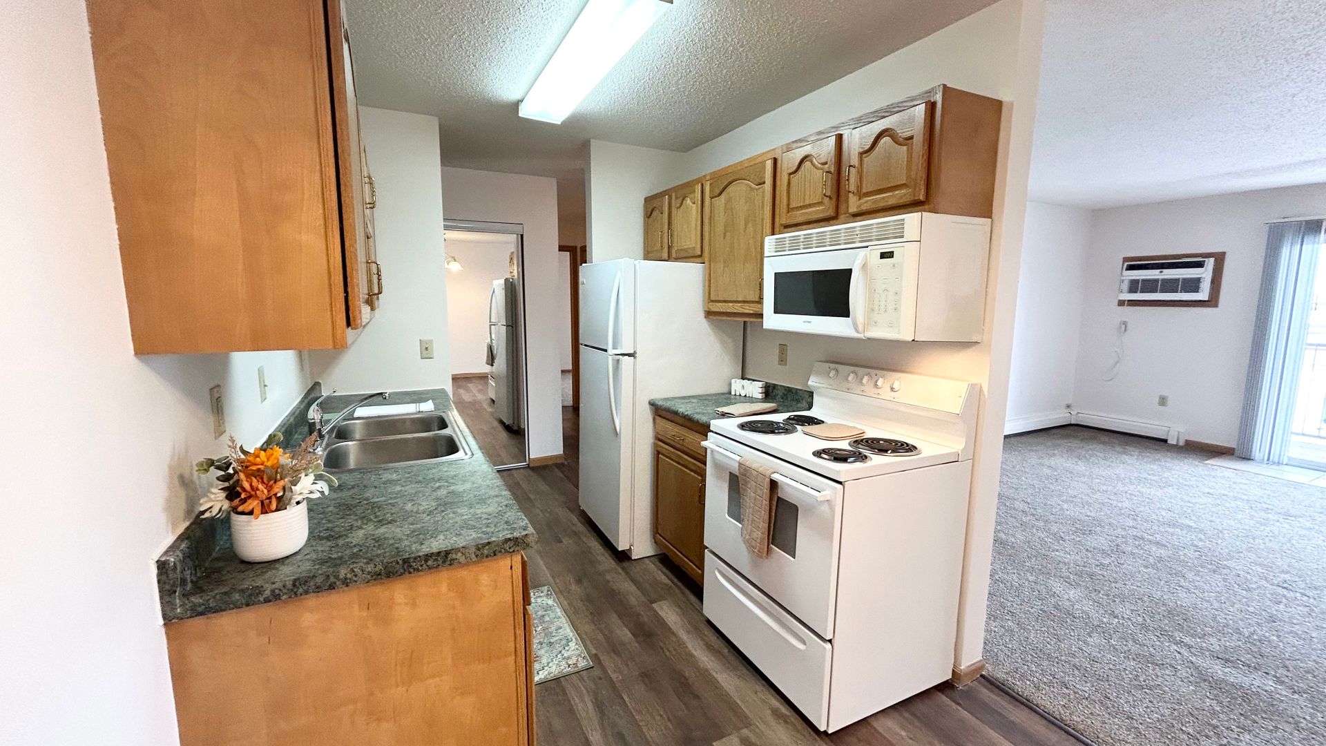 Come tour this beautiful 2-bedroom, 1-bathroom apartment at Dakota View Estates! This unit has plenty of closet space for storage, and a nice walk out balcony to enjoy the fresh air. Conveniently located near West Acres Mall and dining options, enjoy easy access to entertainment. We are pet friendly, just ask about our pet deposit and requirements! Our expansive courtyard offers amenities like a volleyball court, basketball court, pickleball court, playground, picnic tables, grills, and dog waste stations. Indoors, you can take a dip in our pool, workout in our fitness center, or unwind in our sauna. Doing laundry will be hassle-free as we have 5 community laundry rooms. For added convenience, we offer garages for rent and free parking surrounding the building. Don’t miss out, call a leasing agent today to set up a tour of your potential new home!